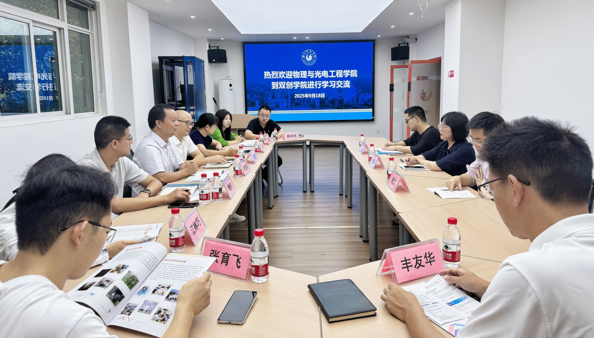 本网讯 (文/罗豪 图/曾延)9月18日,物理与光电工程学院党委书记梁光德、院长肖志刚率班子成员和教师代表赴双创学院开展学习交流。座谈会上,院...