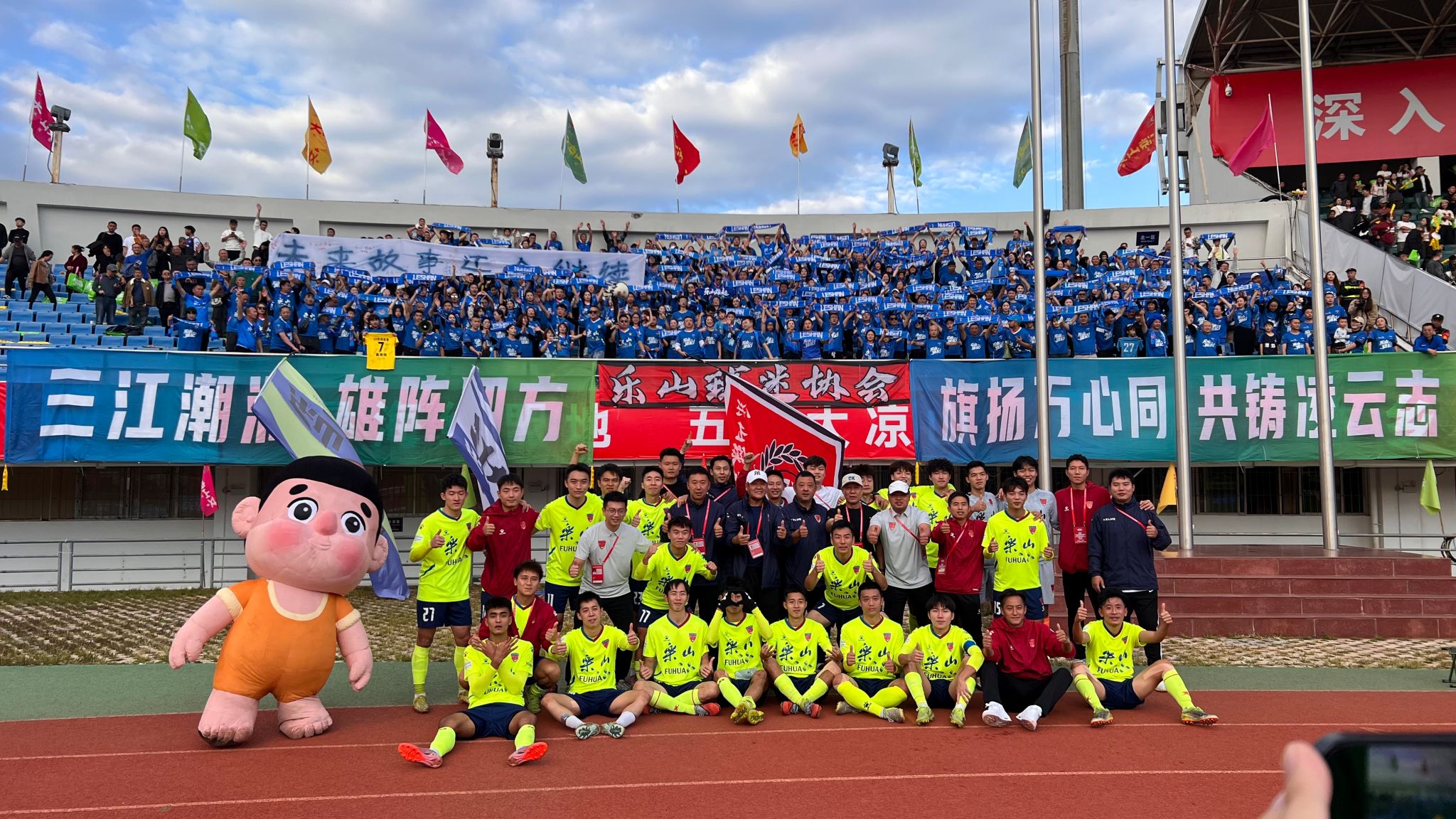 本网讯(文/罗豪 图/刘鑫)近日,我校大学生创业孵化园培育的“乐乐朋友”团队再传捷报:其原创IP“慈乐乐”不仅亮相川超联赛川西赛场,更以“体育+文化”的创新模式深度赋能乐山文旅宣传,相关线上内容点赞突破10万+,成功“破圈”传播,彰显了创业团队服务地方发展的巨大潜力。